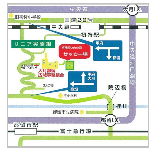 ●まるたの森クリーンセンター・初狩憩いの公園サッカー場 〒401-0022 山梨県大月市初狩町中初狩3206番地8 アクセス経路 大月ICから車で15分 大月都留広域事務組合入口より直進150m ![]() Copyright (c)2003 大月都留広域事務組合 一般廃棄物処理施設